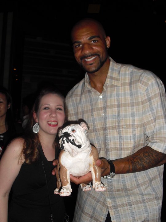 My favorite part of the whole summer came after Vegas. I got a chance to do a charity event in New York City. If you have been following my blog you know that I love NYC. The event was put on by New York Giant Justin Tuck and it was for Literacy. It was held at Slate Billiards. I've never been around so many famous people! I got to meet Justin Tuck, Paul Sorvino, Melle Mel, lots of football players and my favorite, new Chicago Bulls player Carlos Boozer!